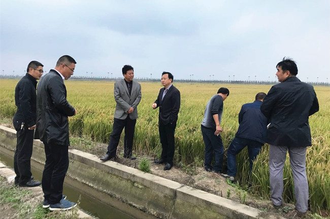 10月16日,苏粮华体会(中国)盐城江海粮油有限公司总经理宋俊成一行来我公司考察调研水稻种植情况,公司党委副书记、副总经理史祥平,党委委员、副经理周绪祥陪同考察。