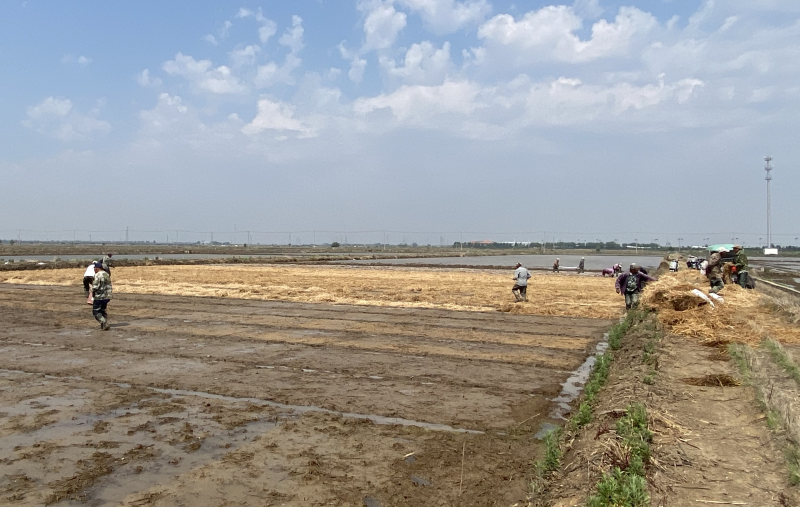 6月10日,在大新农场的秧板田里,新品种“稻花香2号”启动落谷作业,撒种、盖草、铺膜,处处都是繁忙景象,成了绿色田野上的一道亮丽风景线。