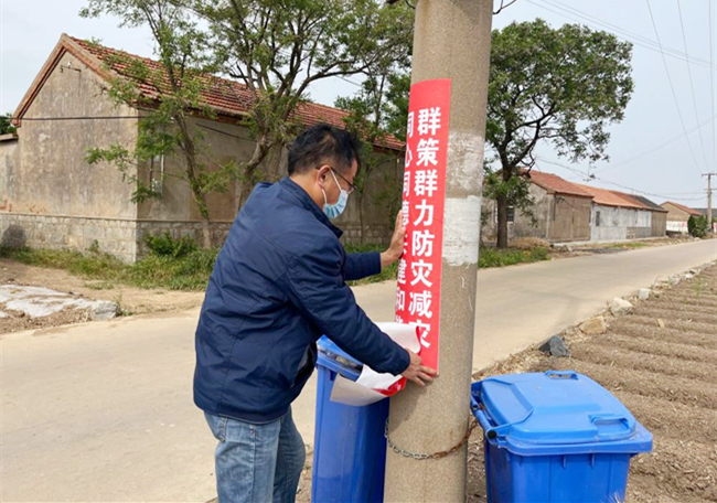 5月11日,黄沙分场开展防灾减灾宣传活动,在辖区张贴防灾减灾宣传标语,积极营造防灾减灾宣传氛围,有效激发职工群众防风险、保安全的主动性,提高职工群众防范化解风险的意识和本领。(严鑫)