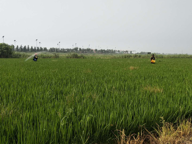 时值立秋、暴雨初晴,正是水稻孕穗旺季,大新农场条田工抓住短暂晴天迅速施撒穗肥。由于近期光照少,阴雨较多,为稳定粮食产量,争创亩产新高,大新农场结合农技员意见,选用复合肥+尿素作为拔节孕穗期最后穗肥施撒。(杨杰)