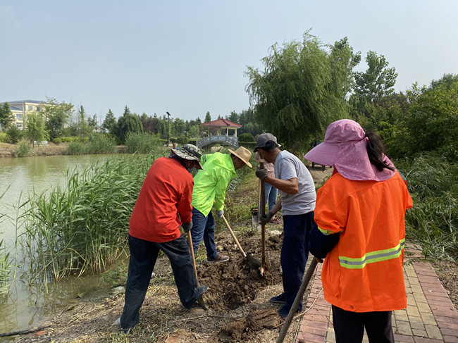 为积极配合公司“创文创卫”工作,8月5日,生产生活服务中心党支部组织党员职工开展志愿服务活动。受前期强风暴雨天气影响,辖区内部分行道树被风吹倒,给主次干道的交通带来一定安全隐患且对场区整理环境造成影响。服务中心党支部积极发挥主力军作用,组织部分党员职工对树木进行扶正、铲除枯树、种植新树、清扫落叶,利用一天时间,大家分工协作、齐心协力,场区内行道树整齐划一,场区环境得到美化。(牛 莹)