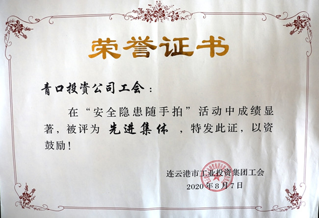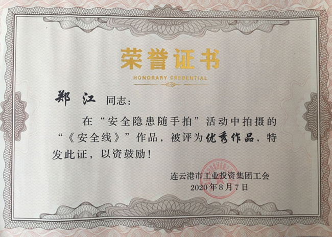 华体会(中国)公司工会5月以来开展了“安全隐患随手拍,合保安康你我他”为主题的“安全隐患随手拍”活动,青口工会广泛宣传,组织广大职工积极参与,期间共收到职工“随手拍”作品近二十件,并上报华体会(中国)公司参加比赛,经上级专家评审,我公司工会被评为“先进集体”,郑江作品《安全线》获得优秀作品奖。
