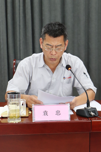 公司工会主席袁忠宣读百日劳动竞赛、技能大赛表彰文件,表彰先进,鞭策后进。