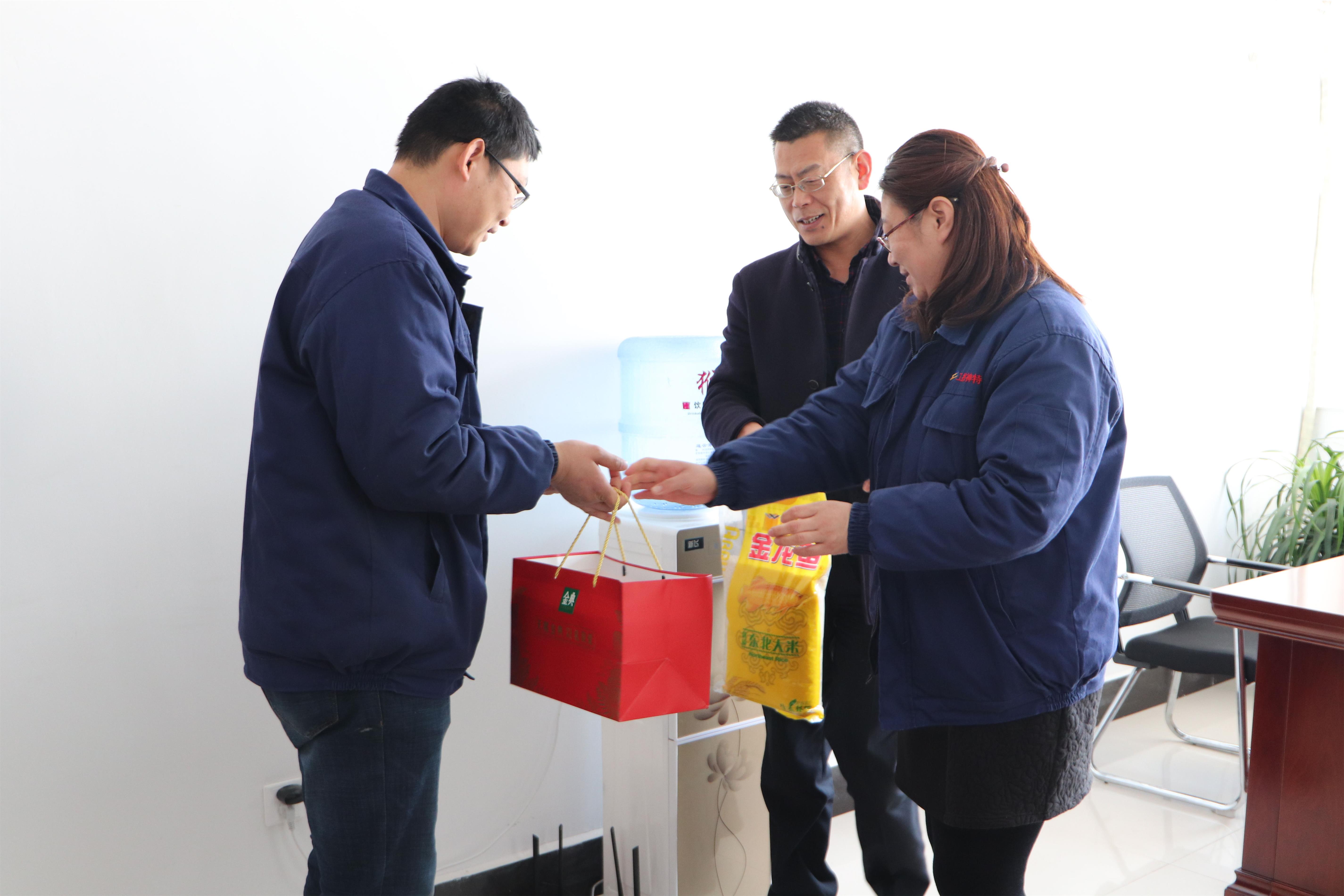 131日下午,公司党支部书记邹德兵、副总经理王爽芳、工会主席袁忠一行走进困难职工孙英山等家中,为他们带去节日的祝福和公司的关怀。