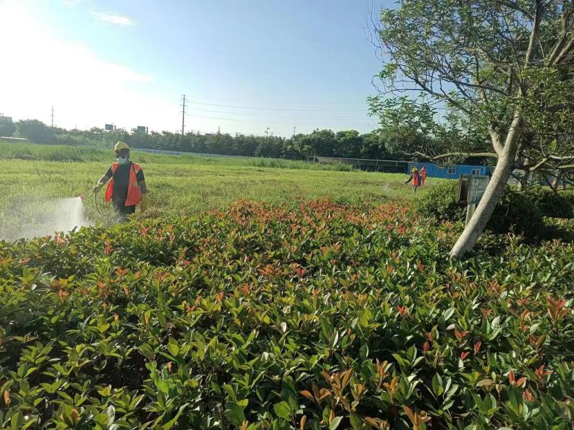 热浪中的奉献,用责任诠释担当。益丰园林分公司全员无惧热浪,迎“暑”而上,奔波在园区联瑞新材公司、格林东方酒店庭院等绿化工程现场,打药杀菌、修剪草坪、栽种球类植物及花卉,确保工程按时按质完成;盛达市政分公司员工,毅然决然地顶着高温,坚守在辖区道路养护现场,抢抓道路维护、人行道砖修复,抢修电缆、护栏、雨水井盖工程;翔立分公司路灯维修人员在高温“烤”验下,顶烈日、斗酷暑,对花果山大道、东方大道、黄海大道等辖区主要路段,坚持每日白天检修、夜间巡查。
