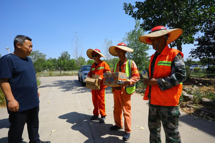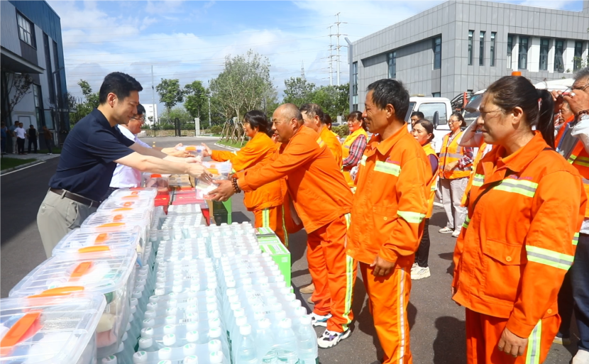 高温下的热情,用关爱抚慰人心。公司工会持续开展“夏送清凉保安康”活动,先后到先锋东滩、跃湖路、东方大道、黄海大道等作业现场,慰问不畏高温,不惧辛苦奋战在高温现场的干部职工,为在高温天气下坚守岗位的职工们撑起一片绿荫。把清凉的饮用水、绿茶和绿豆汤,以及防暑降温药品送到职工手中,亲切地嘱咐职工们做好自我防护,提醒大家在户外作业的同时要注意防暑降温,注重作业安全和身体健康。