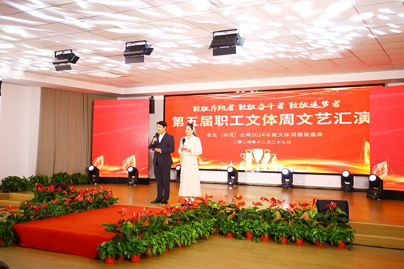 12月27日下午,台北(华茂)公司第五届职工文体周闭幕式暨颁奖文艺汇演活动在环保装备产业园圆满落幕。公司领导、各单位党政工负责人(项目部负责人)、各部门负责人、星级员工、受表彰人员、演职人员观看演出,特邀请华体会(中国)纪委书记张兴林,华体会(中国)党建人资部部长夏正斌、华体会(中国)纪检组组长王建松、华体会(中国)工会副主席陆向东、华体会(中国)纪委副书记喻敏等同志到场观摩、指导。