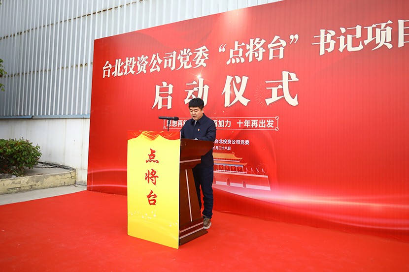 为以党建引领破题开路,推动公司改革发展,充分发挥党组织战斗堡垒作用和党员先锋模范作用,3月28日下午,台北投资公司党委顺利举行“点将台”书记项目启动仪式。公司领导、各单位(部门、项目部)负责人、各单位副书记、“三将”选树人员等参加活动,公司纪委书记朱兵主持启动仪式。
