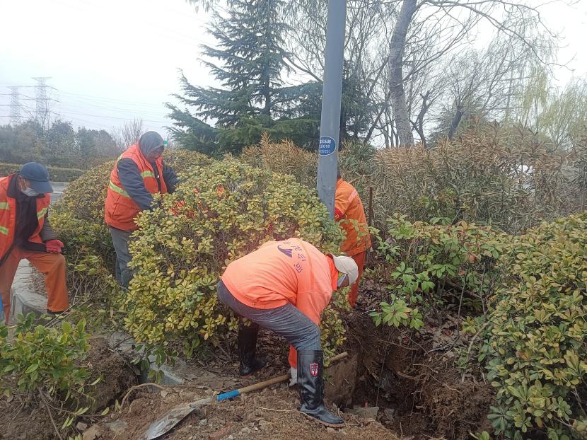 全力做强基础产业,筑牢企业发展“压舱石”。新春伊始,绿化分公司以开局就是开跑、起步就是冲刺的奋进姿态,吹响奋战“开门红”号角,迅速掀起大干热潮。一二月份,公司抢抓“春风”,加班加点,按计划戮力推进乔木与花灌木的修剪;组织人员对辖区的游园、主次干道等重点区域开展枯枝烂叶的清理。三月份,整体气温回升,绿化养护工人更加忙碌,对辖区内香樟及夹竹桃的冬季防寒防冻设施进行拆除;对草坪、苗木浇灌“返青水”,同时抢抓降雨时机,进行适量施肥,为绿化苗木健康生长补足养;对辖区苗木进行“打树围”,扩大树池树穴便于后续收集雨水,增加土壤透气性,为树木提供更好的生长环境;开展雨后除草“歼灭战”,通过化学除草和人工除草相结合的方式,消灭新滋生的杂草,进一步促进苗木健康生长及提升绿化景观效果。一季度,实现绿化养护收入340.75万元,完成计划106.48%。利润138.73万元,完成计划114.65%。