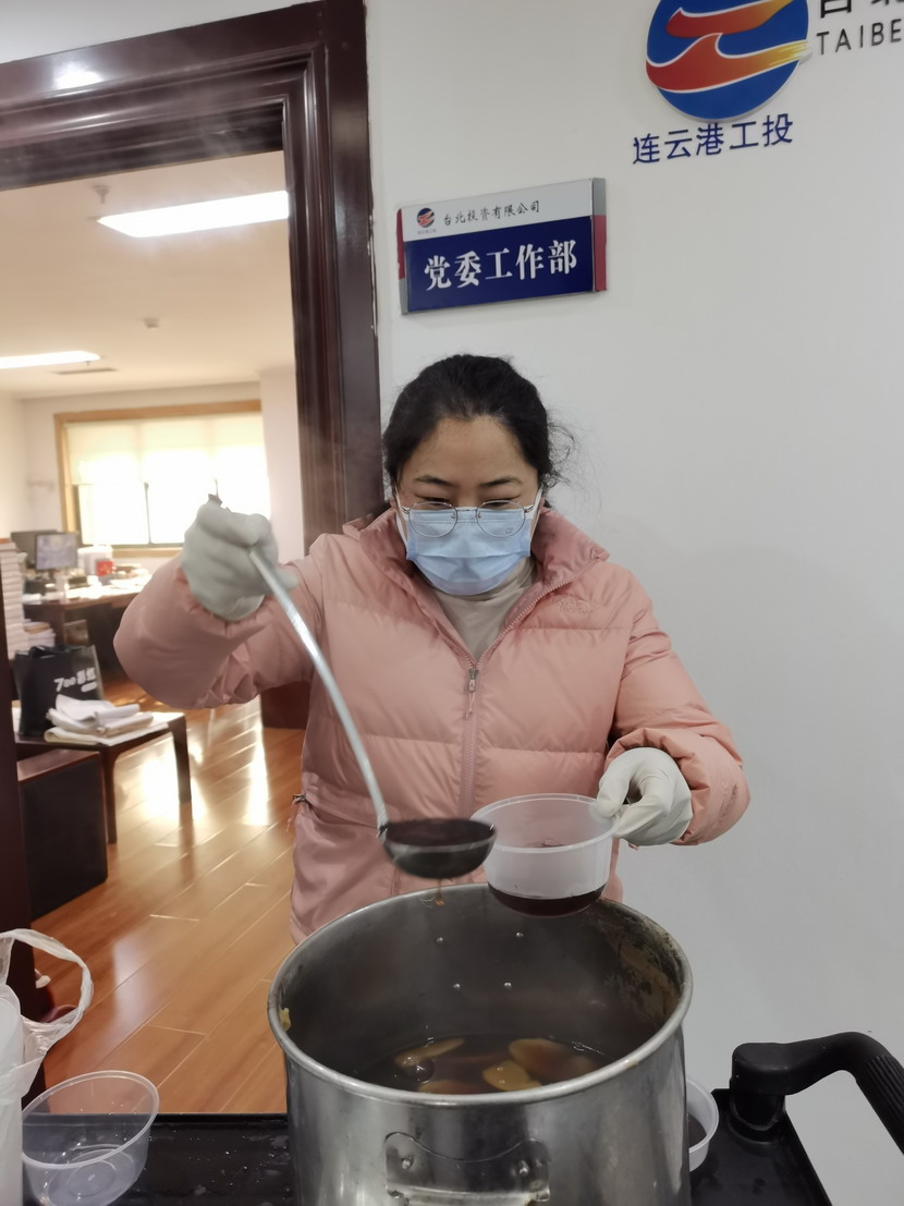 经科学配制,组织专人每天用生姜、红糖、葱根、甘草等原料熬制姜茶提供给员工饮用。职工们喝着香喷喷的姜茶,个个脸上流露出幸福的笑容,边喝边说:这个汤剂既暖身又暖心!