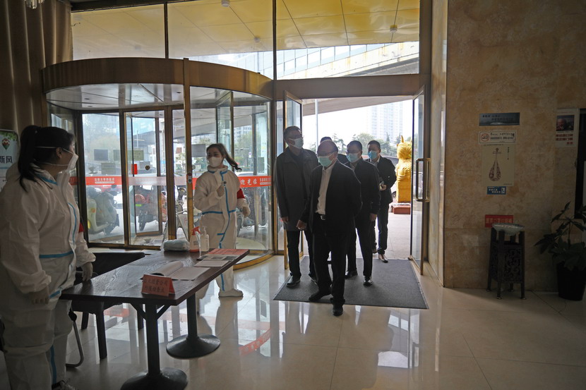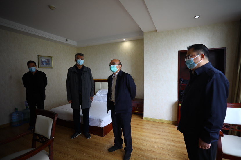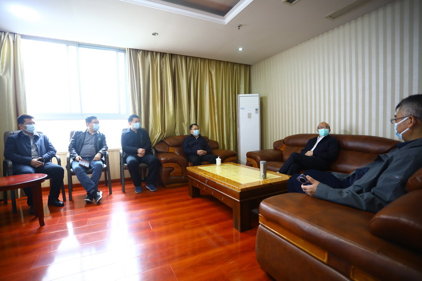 进入办公区后,丁锐一行对临时办公区的办公氛围表示赞赏,各部门门牌张贴到位,管理制度上墙,特别是疫情防控制度全面到位。同时随机来到工作人员宿舍,检查了内卫,对工作人员表示了慰问。