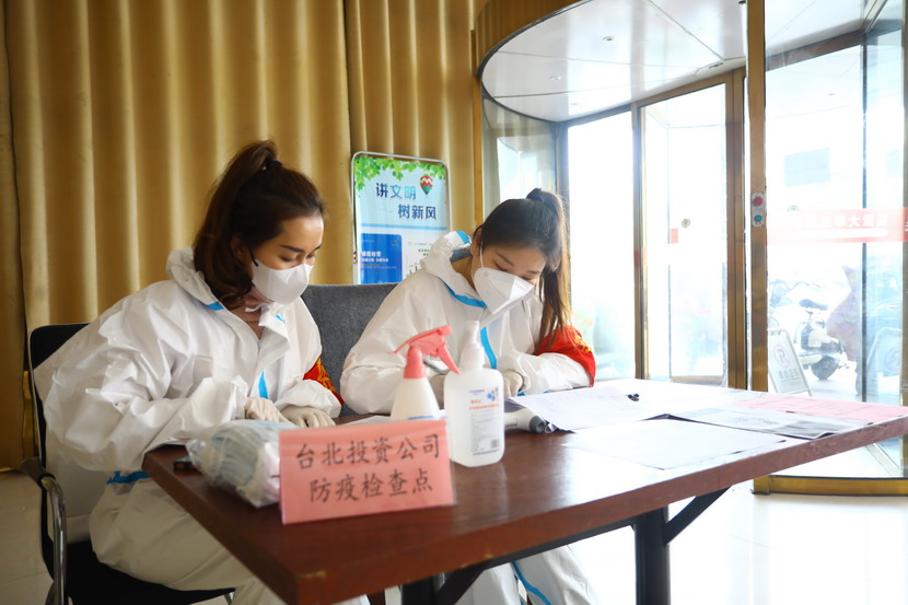丁锐、戴鸿鸣一行在台北机关临时办公点接受测量体温、消毒、扫描大圣码后进入临时办公区。丁锐对“严格卡口”管理表示认同:工作人员精神面貌好,操作专业。