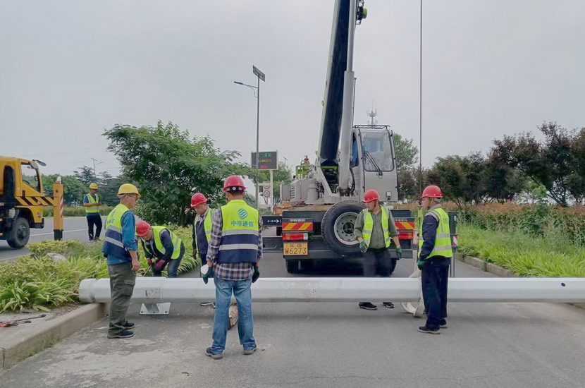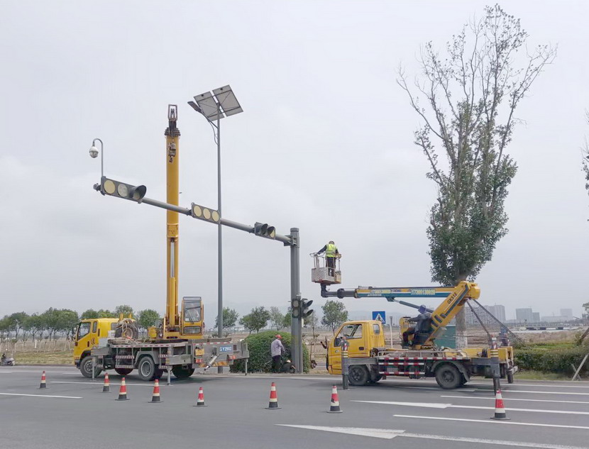 随后,笔者一行,顶着烈日,驱车前往翔立分公司市政工程现场,在封闭的道路内,翔立公司一群黄马甲战士,正顶着烈日在紧张的进行交通监控探头安装工作。据了解他们也是5点多种就到岗位上来了。经理乔以成带着两名员工站在高高的升降机上,钳子、扳手、镙丝刀,各种工具在他们手里轮番操作,汗水已将其工作服的前胸后背浸透。好不容易等到他们安装完一组探头下来,华体会在线一边递水,一边采访,老乔拧开瓶盖,一口气喝下半瓶,这才回答华体会在线的问题:“不能不拼啊,华体会在线离盈利还有不小的缺口,现在全公司、全华体会(中国)都在解放思想提质增效,不干、不努力哪里来的增效啊!”