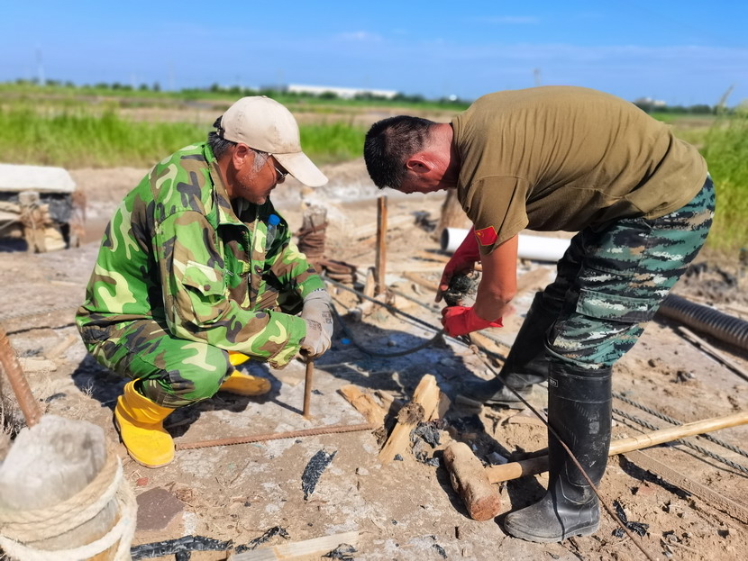 来到海州湾公司滩头,远远望见几名职工在盐池里劳作,走近一看,组长夏军正带领一组人整修塑苫池。“华体会在线5点就出来了,趁早凉,赶紧把塑料布整理一下,布子上都是卤,长了盐就不好处理了,搞不好这卤水还会淌到外面去,造成浪费......”边说着边用肩膀头子蹭一下眼角的汗水,手里的活一直没停。据了解,海州湾公司承接台北矿盐和钙液两大产业,经济比重占全公司收入60-70%,当前虽然是高温期,但是广大职工抢抓汛期难得的晴好天时,每天清晨5点就在滩地上忙碌起来,汗水模糊了双眼,额头的汗水顺着帽檐往下滴落,身上的衣服一直都是湿漉漉的,紧贴在身上,即便如此,他们也毫不在意,用他们的话:“看着池子里每时每刻都在落盐,这点汗就没白淌啊!”华体会在线临走的时候,夏军还不忘说:“今年华体会在线保证盐量突破2万吨,不亏损。”