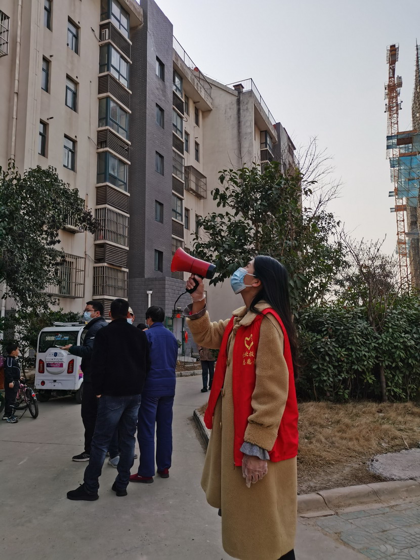 ▲昌圩社区临时党支部副书记苏玲宣传核酸检测政策