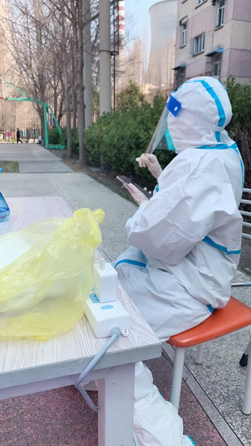 3月8日,临时党支部成立,党员志愿者们随即奔赴社区核酸检测现场。当天,志愿者们穿上防护服。“你好,请戴好口罩,出示健康码。”“你好,这边人比较少,请往这边走,保持一米距离。”维持现场秩序、检查健康码、登记核酸个人信息……志愿者们坚守在各自责任区,细心、耐心回答居民们的各类问题,忙得连喝水的时间都没有。细致周到的服务、无私的奉献精神,得到了社区居民们的一致认可和赞扬。