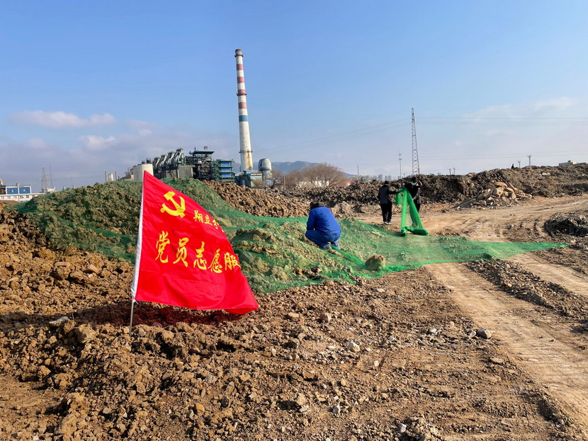 三是做好大型裸露地块苫盖。20日下午,西风正劲,来自海州湾、翔立、美多利、资源公司、猴嘴办、养殖办、留守处、临达、机关等9个党支部的党员突击队、志愿服务队等,全员投入紧张的防尘苫盖工作中。经过半天抢工,100余亩祼土得到及时苫盖。
