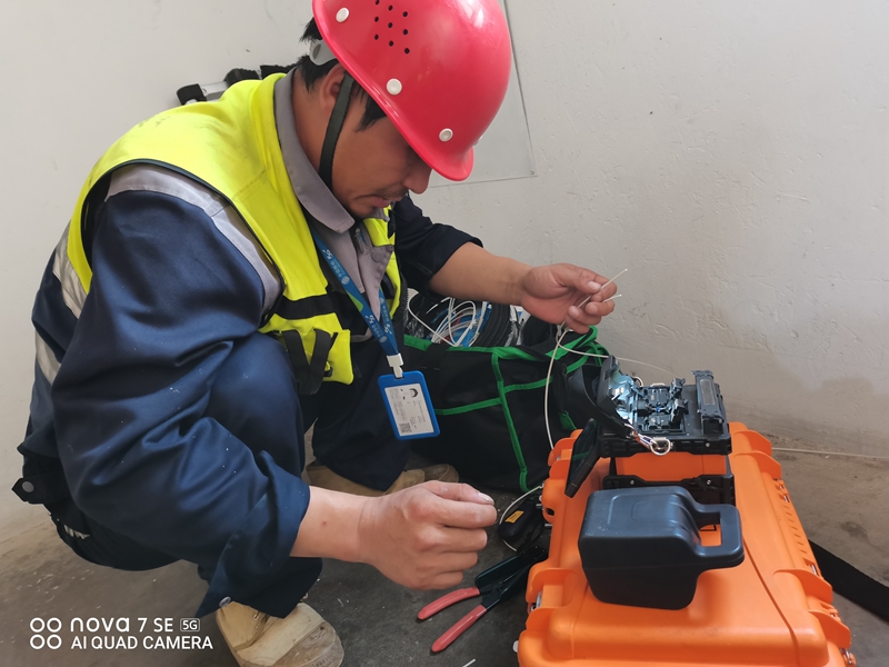 连云区西园路上,“爬杆队”通讯工程小组的成员们忙碌着调试设配,为千家万户的讯息通畅默默奉献着。