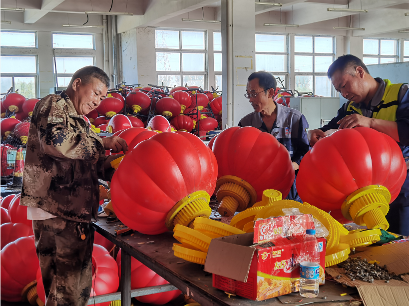 中秋国庆双节将至,翔立分公司承接了LED灯笼和中国结的安装工程。由于灯笼长期重复使用,部分配件已经损坏、丢失,为了保证工程进度,赶在中秋节前完成灯笼和中国结的安装工作,翔立分公司所有职工和移动抽调的部分的员工放弃节假日休息,主动参与灯笼维修工作。所有人分工合作,将坏掉的配件拆掉,换上新的配件,再交由专业电工测试,确认灯笼完好无损再由安装人员运输至路边安装。