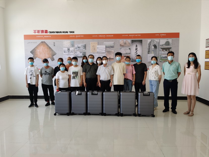 情系学子,圆大学梦。在莘莘学子高考收获的季节,8月25日上午,台北投资公司工会关爱单位职工子女成长,把温暖送给每一位取得大学录取通知书的职工子女。对郁洪刚、伏广好、惠志平、孙敏等6名考上大学、研究生的职工子女进行慰问,为他们各赠送一只行李箱,方便学子入学时放生活用品及学习用品。