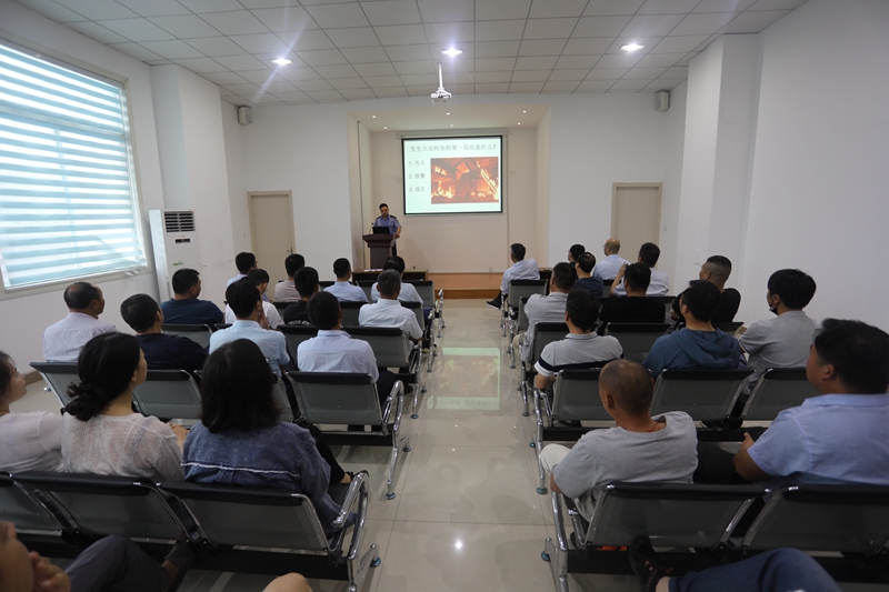董教员结合近年来出现的各种火灾事故典型案例,对火灾发生的常见原因、报警时应注意的问题、各类型火场中特色的逃生技巧、以及如何组织人员疏散,火场自救方法及灭火器的使用、车辆电器火灾的特色处理等知识进行了深入浅出的讲解,通俗易懂地给大家上了一堂消防安全课。