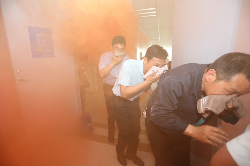 在消防演练现场华体会在线模拟了突发火灾,受浓烟影响的参培人员进行快速有序的疏散逃生。按照董教员的讲解要求,大家“三折八叠”毛巾,浸湿后捂住口鼻,俯下身子,肘部依靠着墙壁,一个跟着一个,在浓烟中疏散撤离。接着演练还进行了油盆灭火和高压水枪使用培训实操。参演人员严肃认真,服从指挥,整个应急疏散演练过程忙而不乱、井然有序。