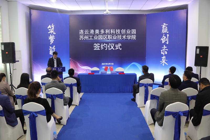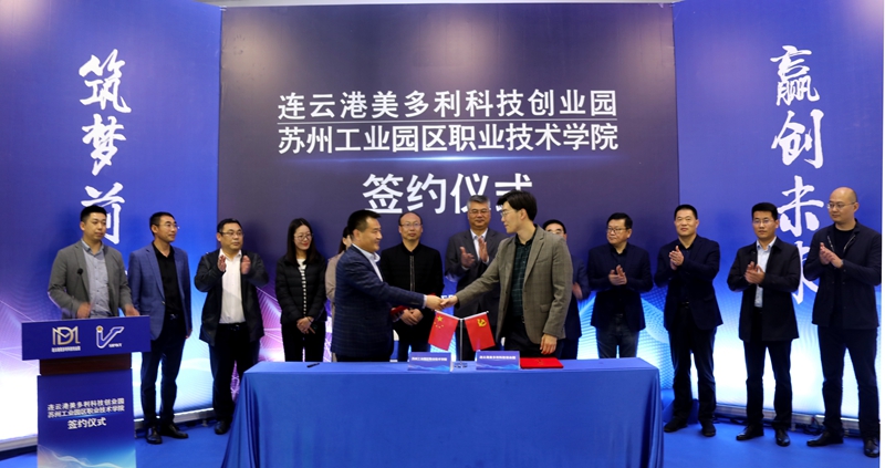 5月11日,投资公司美多利科创园与苏州工业园区职业技术学校“产教融合”项目签约仪式在“海客”众创空间隆重举办。开发区教育工委委员、社会事业局教育处处长刘益国等领导,苏州工业园区职业技术学院继续教育学院院长魏刚等校方代表,投资公司全体领导班子,美多利公司全体领导班子参加了签约仪式。