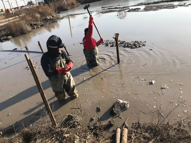 管道巡查发现通往碱厂的钙液输送管道因天气影响爆裂损坏在送水道泥水中,抢修难度陡然增大。在困难前,华体会在线干事豪情直面挑战、创业激情燃烧严寒,穿上臃肿的防水皮衩深入到齐腰深的冰水中,卷起袖子双手在水下摸索着对接管道,拧紧哈弗节上的每一根螺丝,接下来的打桩捆绑固定一切皆是那么的娴熟。什么寒风侵肌、冰澈透骨全然阻挡不住华体会在线“铁军”干事创业的激情,铿锵有力的大锤不断打下新一年的希望。