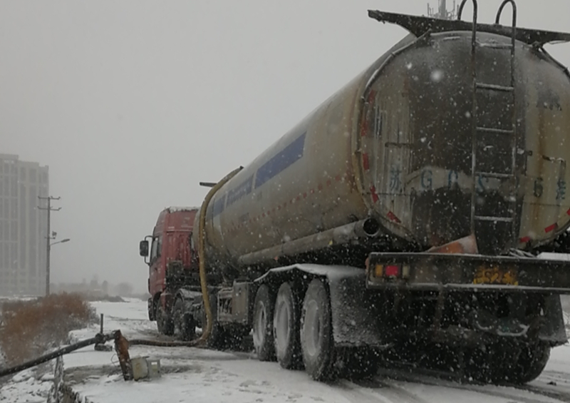 从不因天气影响而中断的钙液销售工作,风雪中仍在如火如荼的进行着。负责钙液开票发放人员仔细的检查并认真注视液位流量计,严谨记录,严格遵守“一车一票制度”,满载钙液的槽罐车在风雪中缓缓前行,乘载着“瑞雪兆丰年”的希望!