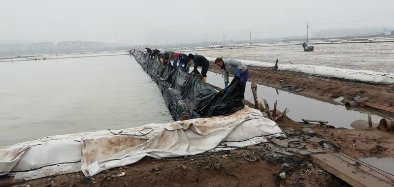 由于劳动力较为缺乏,人工扒盐分为两个班次白班和小夜班。工人们在完成各自班次任务的同时,还要承担起后期繁琐的相关工作。例如:扒盐前要将塑池内的塑布整理、收缩到位、用活碴机对准备要扒格块进行活碴、成廪后对盐廪全面覆盖、并抽出专人对大夜班空档期电缆线及机电设备进行看管等等。其中池板整理是一项紧急活,扒完盐后卤水要紧跟着进池,小夜班的人下班后有时只睡几个小时,早上7点多就来到滩头整理池板,为抓紧灌池争分夺秒争。