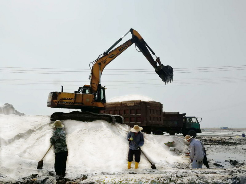 海州湾公司李明强调:“今年华体会在线在开太地区要完成退钙转养工作,为保证冬季滩地改造工程如期进行,华体会在线加大了开太地区秋扒盐工作,节目期间我公司全员到岗,加班加点,绝不为‘退钙转养’拖后腿”。