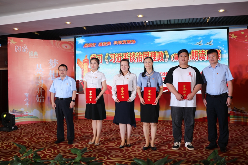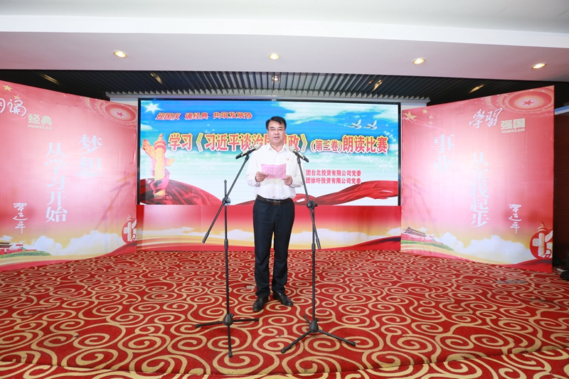 为热烈庆祝中华人民共和国成立71周年,不断将学习贯彻《习近平谈治国理政》和习近平新时代中国特色社会主义思想引向深入,9月30日上午,台北与徐圩投资公司党委联合举办“迎国庆,诵经典,共筑发展梦”学习《习近平治国理政》第三卷朗读比赛活动。