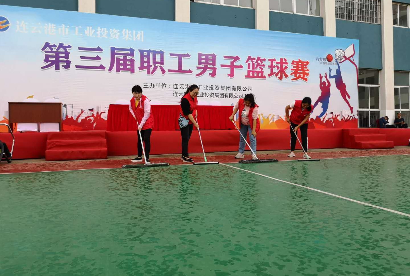 9月21日,连云港市工投华体会(中国)第三届男子篮球赛在台北投资公司美多利科创园篮球场正式拉开战幕。投资公司组织志愿者开展赛事服务活动。下午2点的比赛,华体会在线的志愿者早上8点就已经在赛场集合完毕,进行赛前各项准备工作,下午1点不到就早早地各就各位等待观众和运动员入场。