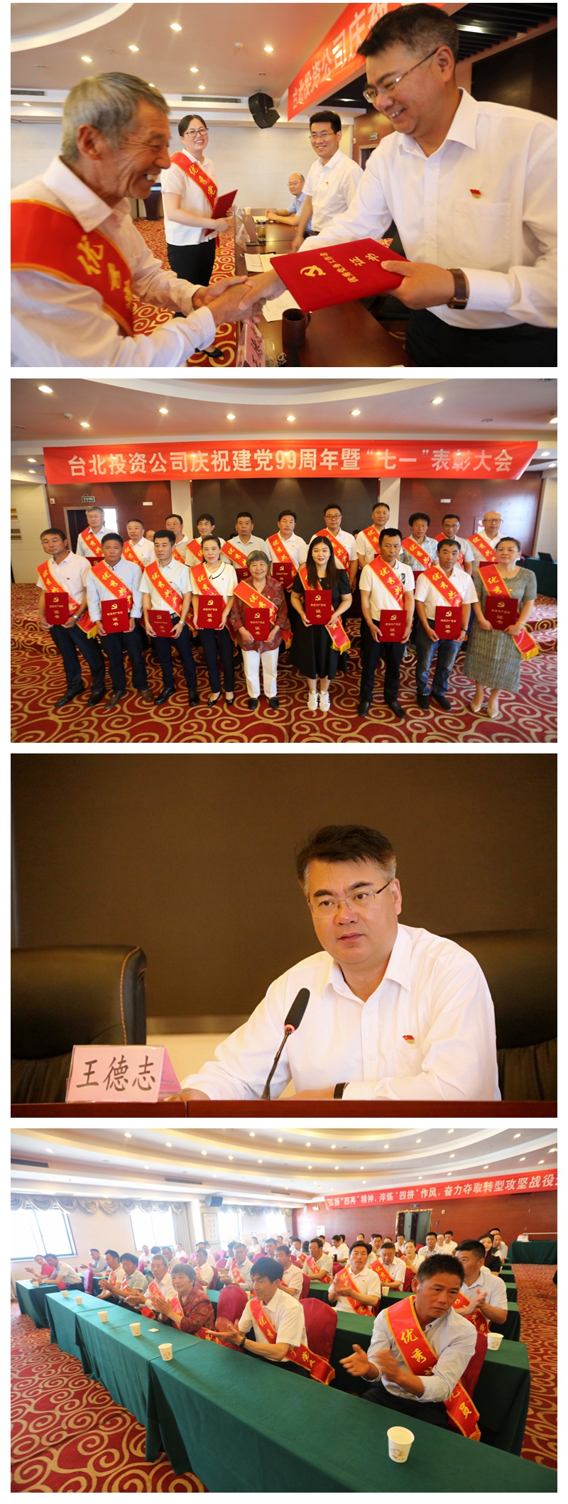 王德志代表公司党委向为台北发展无私奉献的广大共产党员表示衷心的感谢,并致以节日的问候!他指出,去年以来,投资公司党委坚持以习近平新时代中国特色社会主义思想为指导,贯彻落实新时代党的建设总要求和新时代党的组织路线,坚持和加强党对国有企业的全面领导,进一步配强基层党支部书记、副书记班子,委派纪检专员,着力实践党建与经济工作的互为融合,实现了“五个明显提升”。一是党员干部的思想素质明显提升。二是党组织的战斗力明显提升。三是融入发展中心明显提升。四干部廉洁自律意识明显提升。五是和谐企业构建水平明显提升。