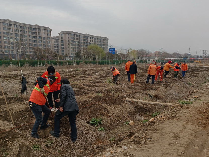 春风拂面,大地添绿。当下正是植树造林的好时节,益丰园林公司抢抓春季黄金期,正在80亩苗圃基地进行果苗移植,时间紧、任务重、人手少,绿化分公司党支部组织安排20余名党员及生产骨干火速“增援”,高质高效完成此项工作。