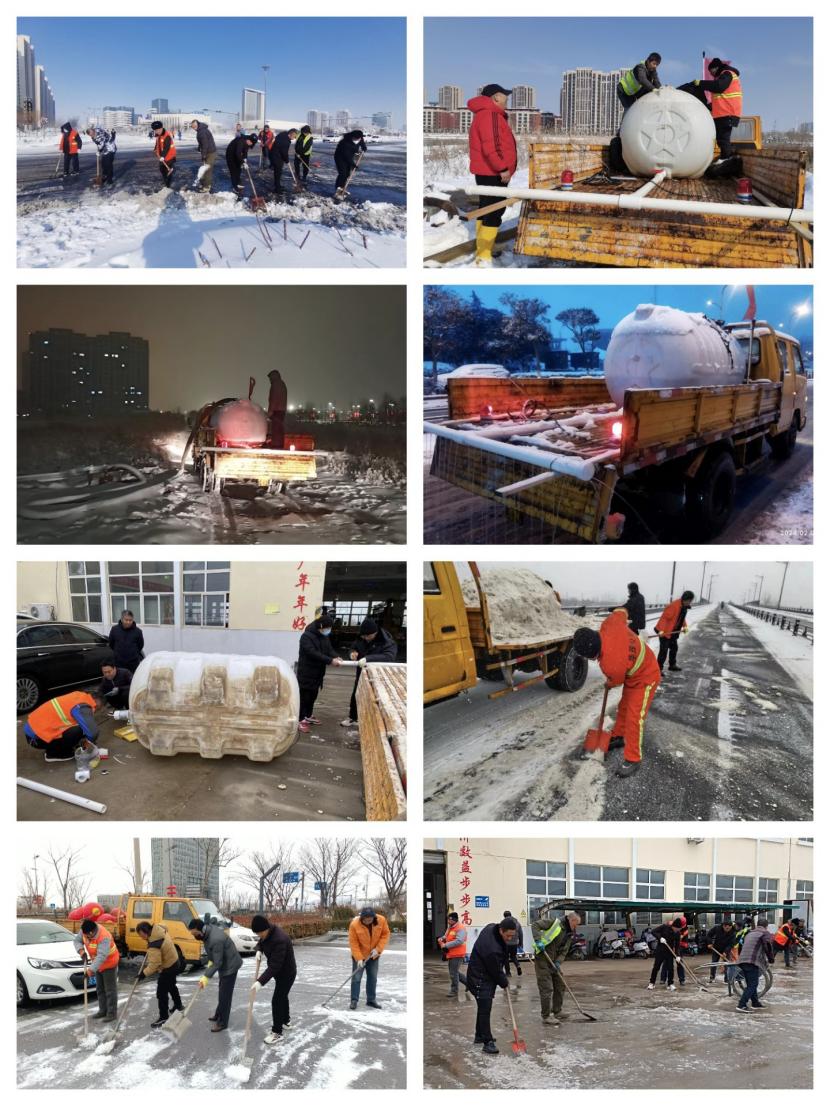 日前,一场罕见的暴雪突袭港城,给新春送来了银装素裹,也为市民出行和生产生活带来了不便。当第一场雪降临开发区之后,翔立分公司的党员职工积极响应投资公司党委的号召,积极投身于扫雪除冰一线。他们来到市开发区创智绿园和兄弟单位的同事们一道挥起铁铣一铣又一铣的清除公园内的积雪,大家伙忙活了两个多小时,终于清除了公园内主干道上的冰雪,刚刚从安装灯笼工程结束后还没来得及及时休息的翔立铁军战士们脸上露出了喜悦的笑容。