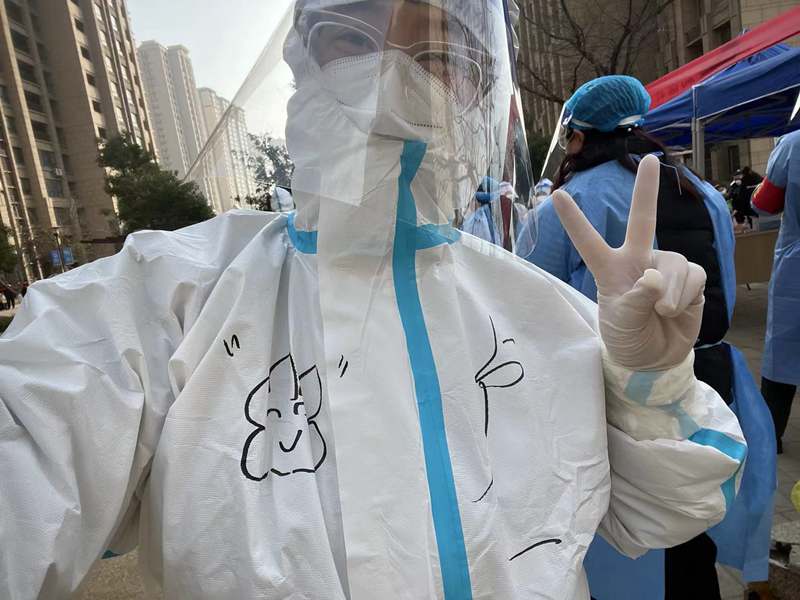 3月12日,晴,8:00到达社区核酸采样点,准备上岗,社区负责人给华体会在线进行了“防护服穿脱”及防疫知识的讲解学习等一系列十分细致地培训后,有点兴奋的穿好“大白服”,带上手套、头套和面罩,社区阿姨还帮我在衣服上画上了可爱的涂鸦;