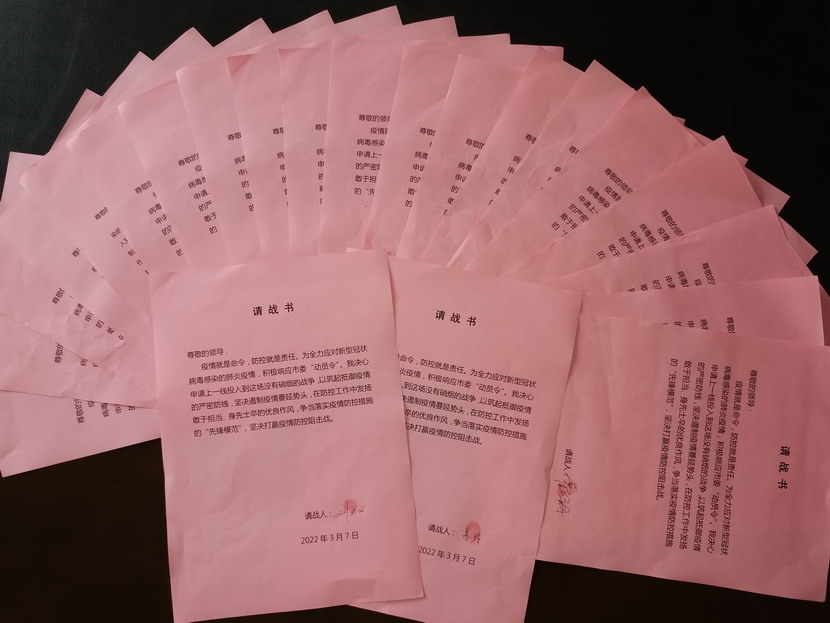 在党员带动下,群众也纷纷行动起来。“还有华体会在线,华体会在线虽然不是党员,但是华体会在线也想为抗疫贡献自己一份力量......”优秀职工沈秀成、邱荣滨、韩永刚、占恒春如此说道。“我决心申请上一线投入到这场没有硝烟的战争,以筑起抵御疫情的严密防线,听从组织的统一指挥与安排,不计得失,无论生死,绝不退缩......”,42名志愿者在请战书上签上自己的名字并按下手印,纷纷表示,随时准备着党中央的召唤,祖国的召唤,一声令下,立即奔赴抗战一线。