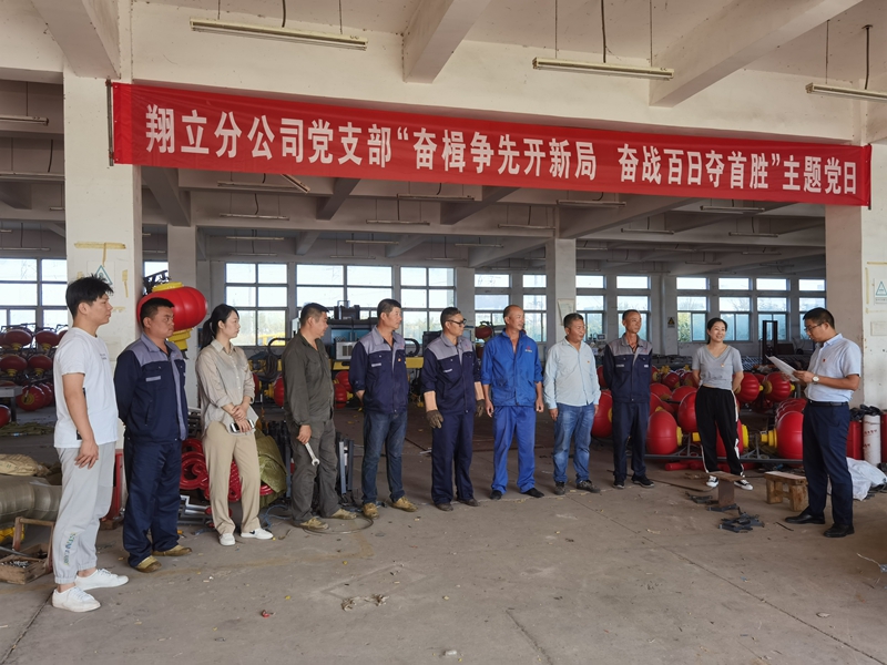 翔立分公司按照公司党委要求,积极组织党员群众开展“奋楫争先开新局 奋战百日夺首胜”主题党日。首先,由支部书记带领学习全市创新型城市建设暨工业经济高质量发展大会会议精神。学习结束后,在翔立分公司厂房组织人员对厂房环境整治,将维修灯笼造成的杂乱环境规整。最后,设立安全生产监督岗、疫情防控吹哨人等岗位,持续开展“事故隐患大扫除活动”。