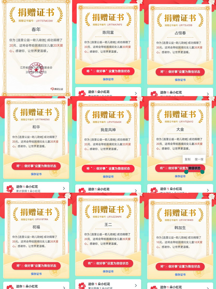 “99公益日”是响应国家9月5日中华慈善日号召,由腾讯公司联合数百家具有公开募集资质的慈善组织共同发起的全民公益活动。近年来,在海州湾公司,传播社会正能量、弘扬社会正气的良好氛围日益浓厚,涌现出捡数千元现金归还失主的朱文健、帮扶救助中暑晕倒老人的王绪峰、免费理发多面手霍正钢等等数名爱心职工。在“99公益日”募捐活动中,虽然公益平台最低募捐金额1元即可,但是广大职工尽力奉献自己的一份力量,10元20元比比皆是,气氛十分热烈。大家纷纷表示,奉献爱心、扶贫济困是每个社会公民应尽的责任和义务,只要人人都献出一点“爱”,就能形成“滴水成河、汇流成海”的磅礴力量!