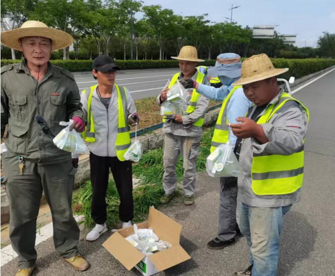 近期天气炎热,为做好职工夏季户外防暑降温工作,关爱一线职工的健康安全,翔立分公司给一线工人送去藿香正气水、急救药品、饮用水等防暑物资,时刻关心工人们的身体健康,为在现场忙碌的工人们送去一瓶水、一句关心的话语,让他们充分感受到公司对他们的关爱,职工们坚守着自己的岗位、尽职尽责,充分发扬翔立的“铁军精神”,为台北的明天奋斗拼搏,保增效保岗位。