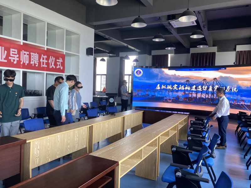 美多利公司到淮工学习体验“虚拟现实船舶建造仿真实训系统”