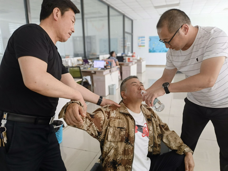 近期高温炎热,我市已启动高温四级应急响应,职工在高温环境下易发生中暑,为保证职工作业安全和身体健康,切实加强暑期劳动保护工作,根据台北投资公司要求,8月9日美多利公司组织开展一次职工防中暑应急处置演练。
