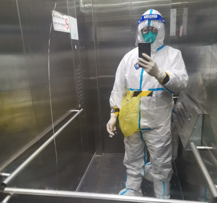14日 雷声骤响,大雨突降,集合时间待定,安心的吃了点早饭,依旧不敢吃多。9点开始,第九轮。我出状况了,刚采一会口罩松了,眼镜、面屏上全是雾气,什么也看不见,没法操作。为了不影响进度我被换下,原定入户采集的志愿者顶上。防护服脱了就浪费了,我就等入户医生到达,去上门采集。扫楼和定点完全不一样,闷、热,大白服都湿透了。13.40结束,全身“喷杀”消毒,脱装备,再喷消。饭后没安排我工作,做了核酸后在小区里坐了几个小时,心里始终不能平静,害怕,不安占据了我的内心,即使做了防护措施但是还是有很大风险,我也有家人,所以我害怕,真的害怕!“没事的”“没事”最后还是妻子开解了我。