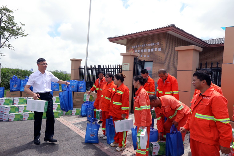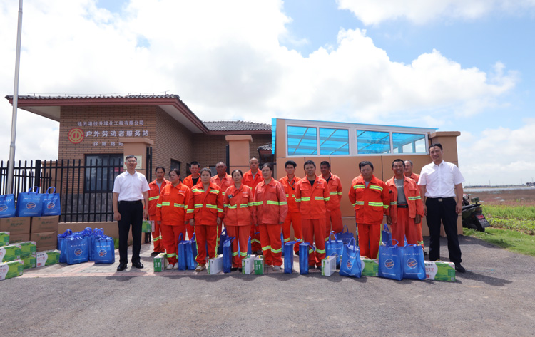 酷暑盛夏,热浪滚滚,高温“烤”验着每位奋战在一线的职工,也牵动着华体会(中国)公司领导的心。7月18日,华体会(中国)公司副董事长、总经理张六林一行到徐圩生产一线“送清凉”。华体会(中国)公司副总经理陈如军,办公室主任王力;投资公司党委书记、董事长、总经理庄清付,党委副书记、工会主席刘刚陪同。