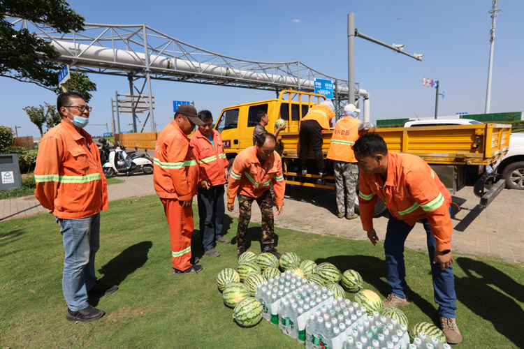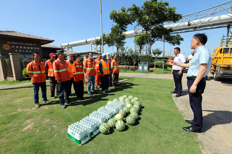 75日下午,投资公司党委副书记、工会主席刘刚深入一线看望慰问高温作业职工,为他们送去矿泉水、西瓜等防暑降温物品,嘱咐他们调节好高温作业时间,用好防暑降温药品包,确保高温作业安全。