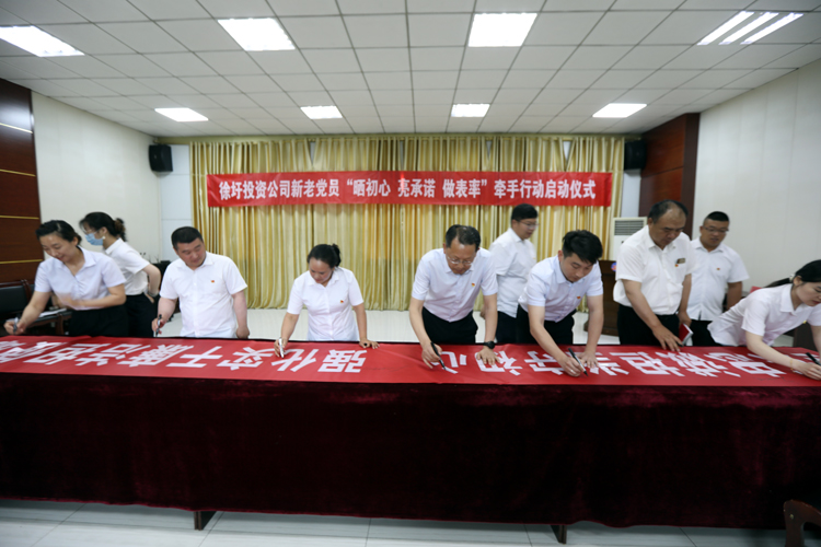 6月29日,投资公司举行新老党员“晒初心•亮承诺”牵手行动。投资公司党委副书记、工会主席刘刚,各支部新老党员代表及党务工作人员代表参加会活动。