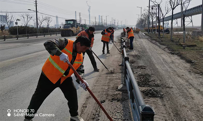 315日,该分公司近15余名党员突击队员,在党支部号召下,无视春光照晒、三人一组、两个一对、挥动手中铁铣,无惧泥土扬尘四起,清除苏海路,港前卡口护栏下车辆抛洒泥土2000多米长,人工清扫护栏内石子30多处,车辆转运20多车。党员陈小军、陈海彬等同志尽管手磨破了,仍然坚守道路最前沿,经过30余名队员两天持续奋战,整洁靓丽的路面再次展现石化园区。