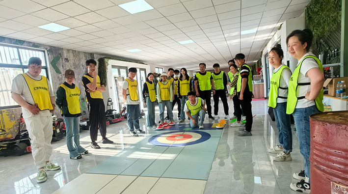 30余名青年骨干依次分成两队进行团队拓展比赛,大家在暖场游戏破冰行动中相互熟悉。紧接着大家按照队伍分组开展训练游戏,训练中大家集中精力,相互扶持帮助,共同完成对战。其中冰壶游戏考验每位青年的耐心和定力,需要瞄准方向,掌握好力度,共同协作得出好成绩。多个极富挑战性的项目在大家的齐心协力下顺利完成。整场活动现场气氛活跃,尽显青春活力,比赛的形式也将本次活动推向了高潮。