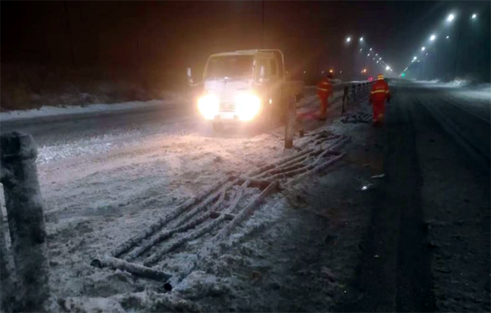 市政分公司根据公司安排,负责融雪剂装卸工作,从2月3日下午到4日上午,市政分公司累计装卸融雪剂已达150余吨。该分公司在做好保障融雪剂装卸作业的同时,抽调4名精兵强将,处理因大雪导致的道路交通事故应急处置4起,应急处理道路护栏11节,约38米,防止交通事故二次发生。在5日凌晨更是经理卢正杨带领10名党员先锋突击队,支援重点道路徐新路的融雪剂抛洒作业,仅靠双手挥着铁锨,通宵奋战,迎难而上,高质高效完成融雪剂抛洒作业路段。(李涛)